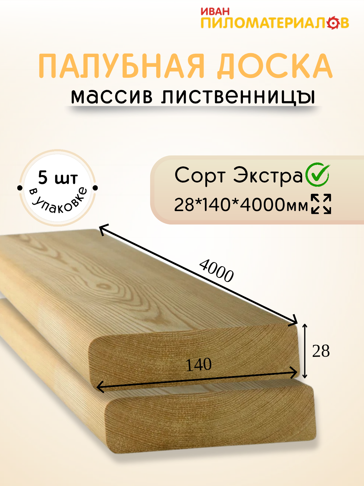 10 цен на Палубная доска из лиственницы, сорт Э 28х140х4000х5 шт. Цена указана за упаковку