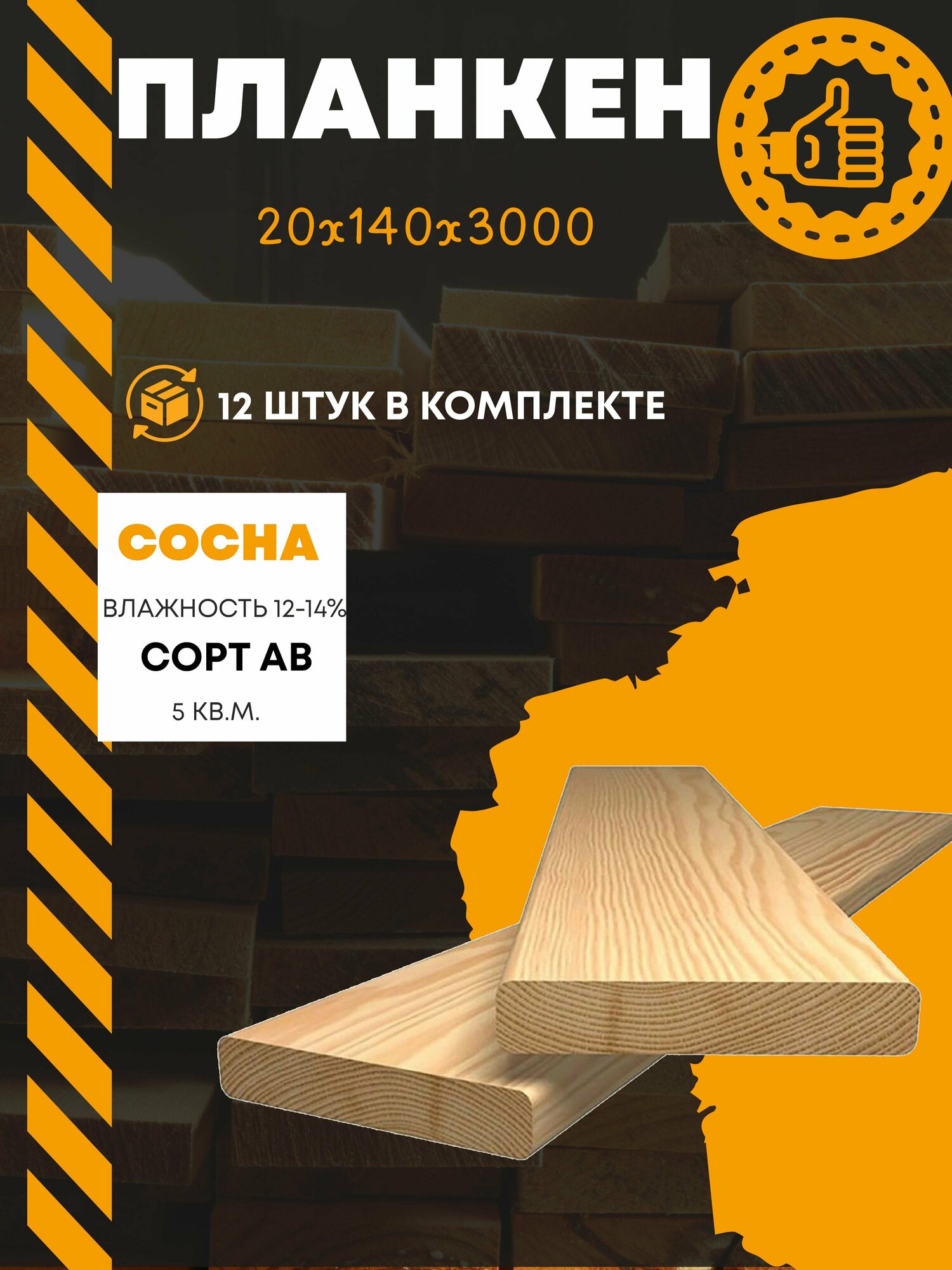 Планкен прямой 20х140х3000 (комплект 12 шт. (5 кв.м.) пиломатериал из древесины хвойных пород(сосна). информация:
