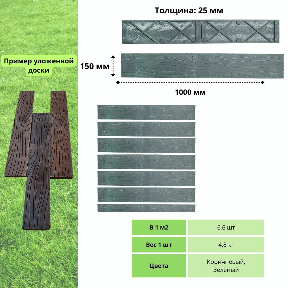 Доска полимерно-песчаная универсальная 100х15х2,5 зеленая , комплект 4 штуки информация: