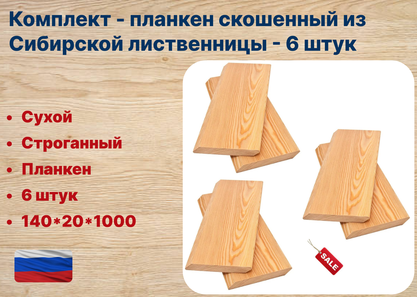 Комплект - планкен скошенный из Сибирской лиственницы - 6 штук информация: