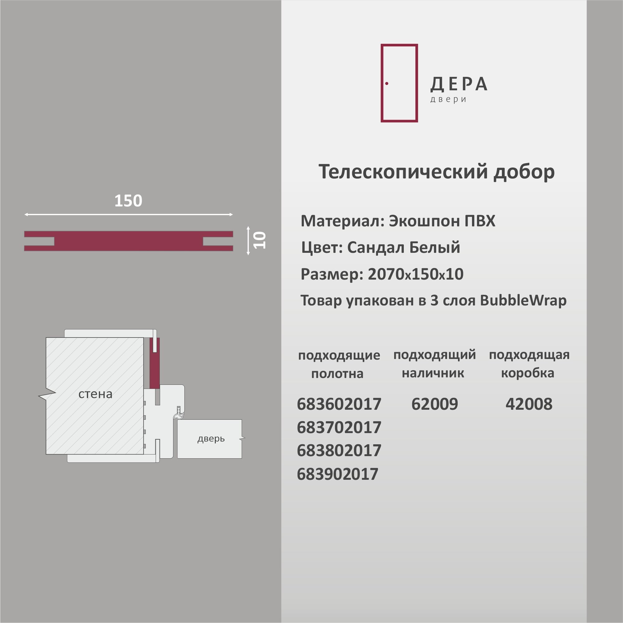 Дверной добор Дера Сандал Белый, шириной 15 см, 3 шт. информация: