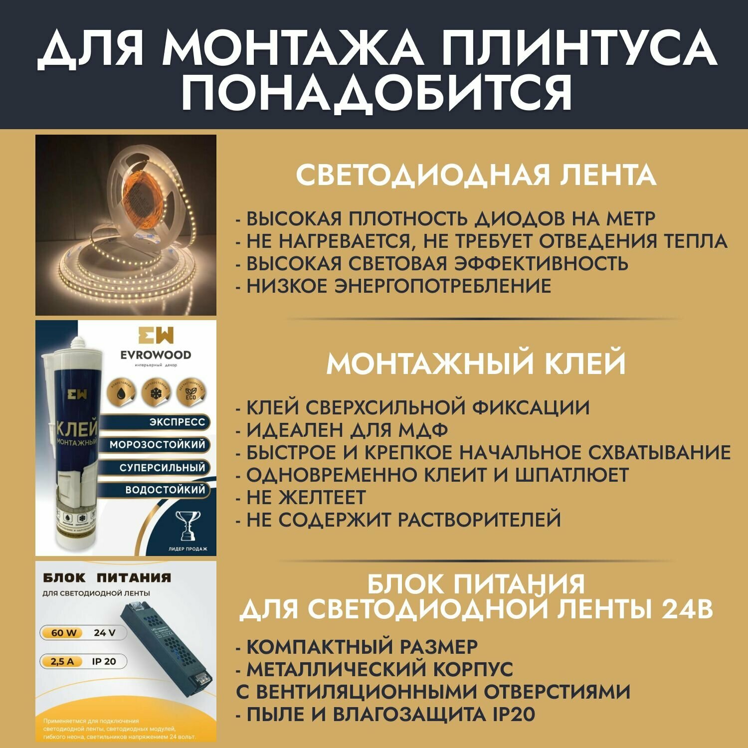 Плинтус напольный МДФ PN060LED 83х12х2000 EVROWOOD с подсветкой 1ШТ 1 644 ₽