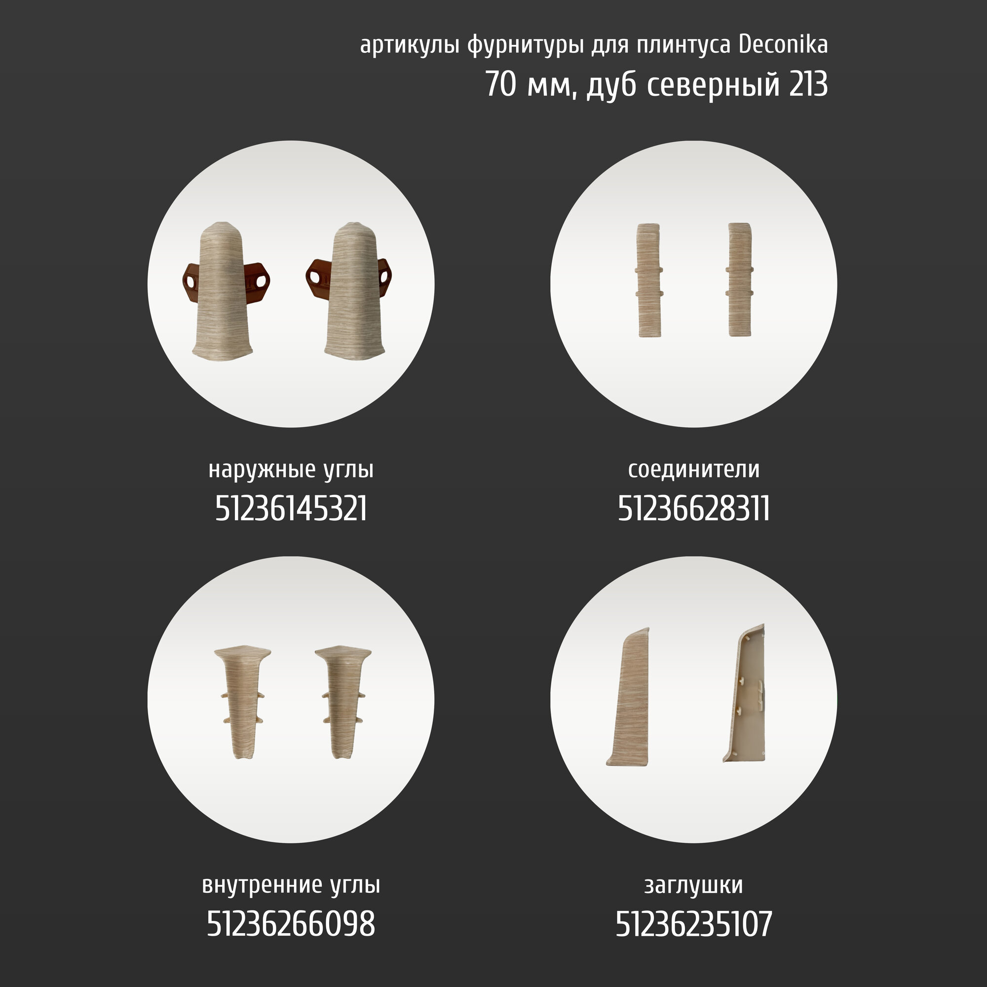 Пластиковый плинтус Идеал Деконика 70 мм Дуб северный 213