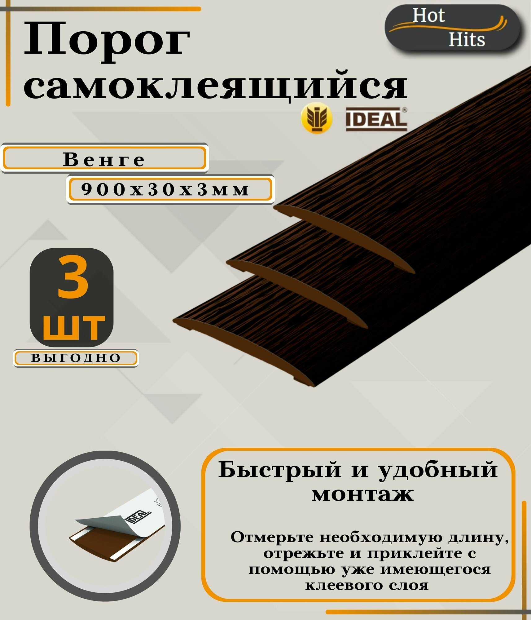 Порог ИЗИ 301 венге, 30x900 мм, самоклеющийся пластиковый, 3 шт. информация: