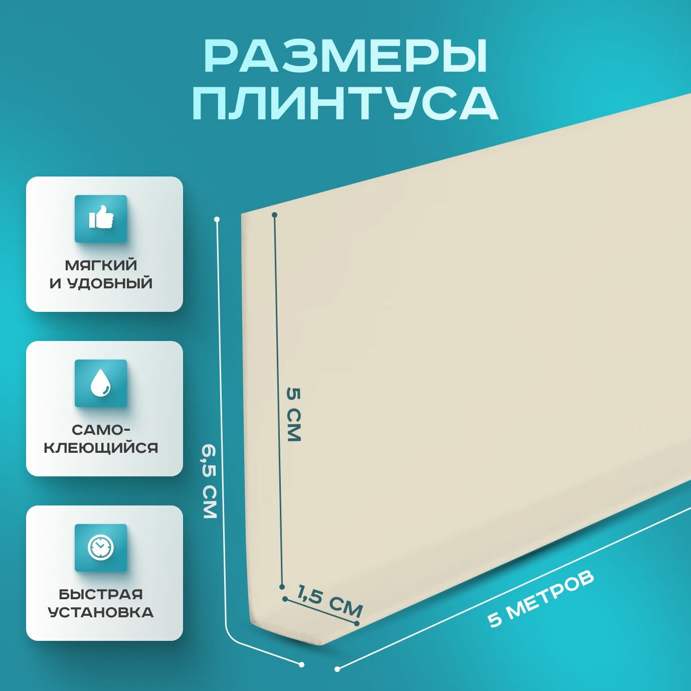 Плинтус гибкий напольный самоклеящийся, 65мм х 5м, слоновая кость, гибкий плинтус для пола. информация: