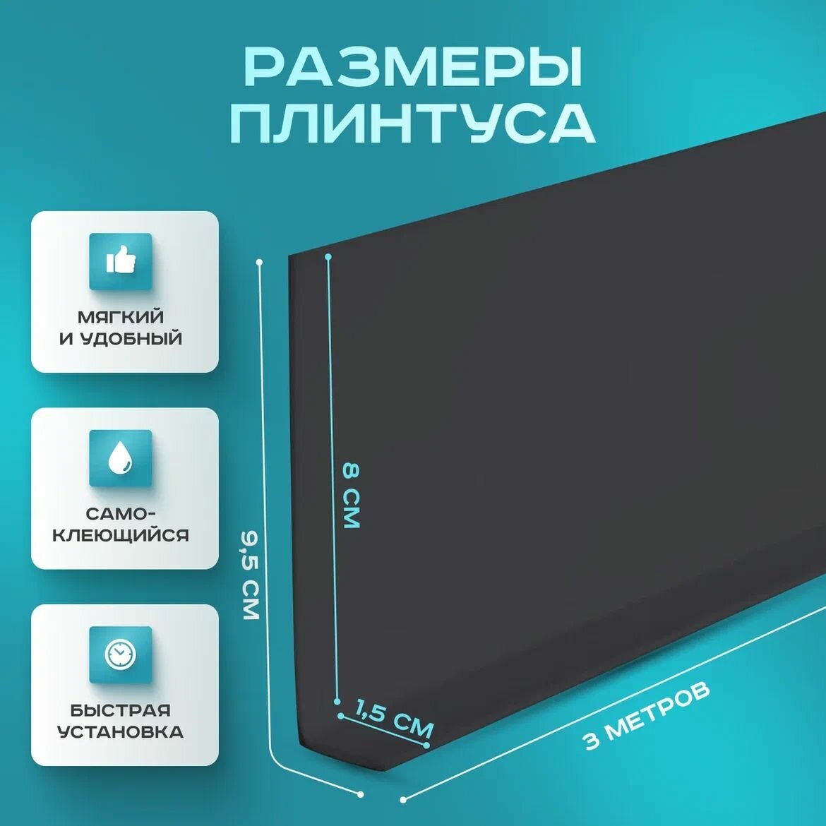 Плинтус гибкий напольный самоклеящийся, 95мм х 3м, чёрный, гибкий плинтус для пола. информация: