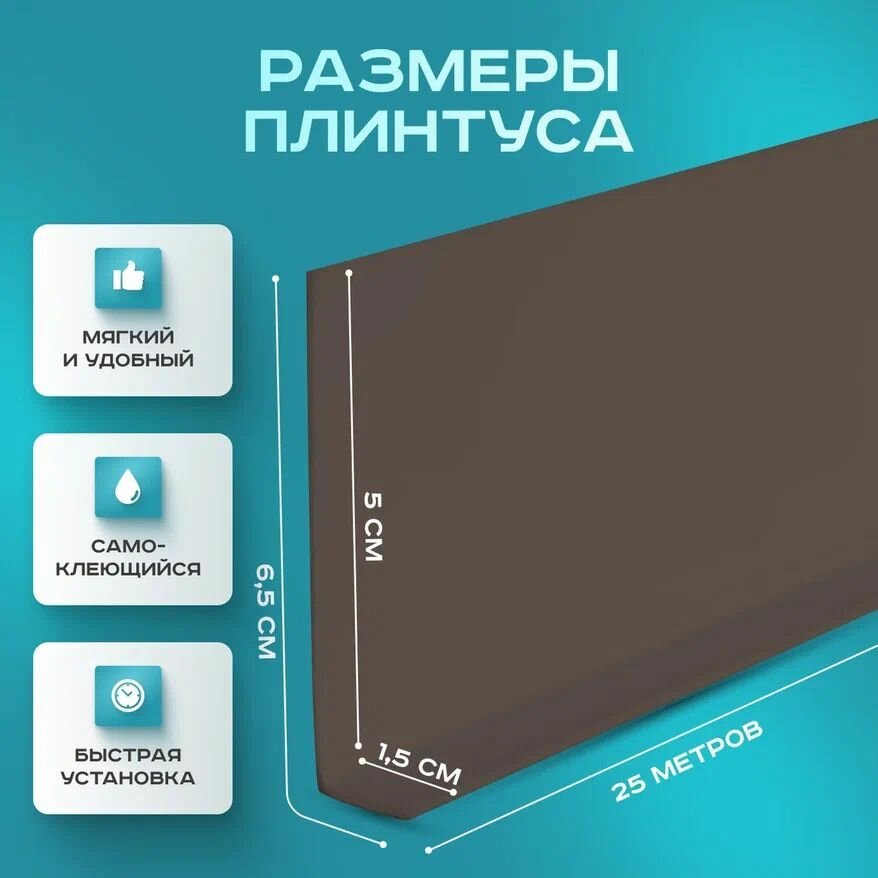 10 цен на Плинтус гибкий напольный самоклеящийся, 65мм х 25м, коричневый, гибкий плинтус для пола.
