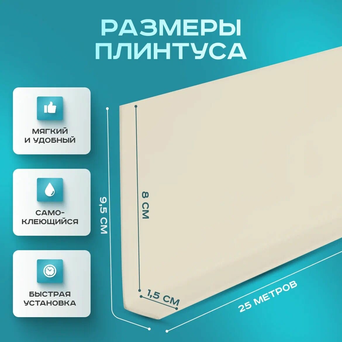 Плинтус гибкий напольный самоклеящийся, 95мм х 25м, слоновая кость, гибкий плинтус для пола. информация:
