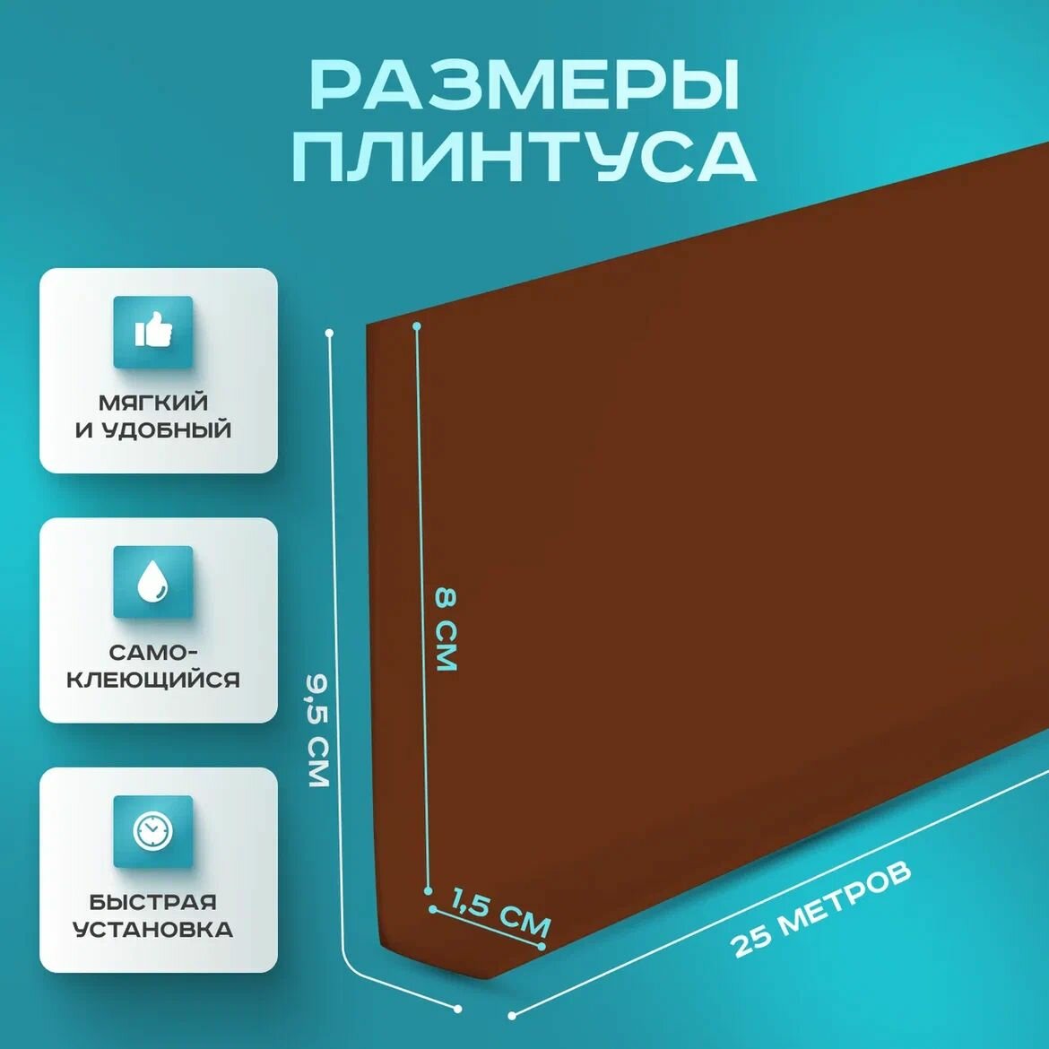 Плинтус гибкий напольный самоклеящийся, 95мм х 25м, коричневый, гибкий плинтус для пола. 10 400 ₽