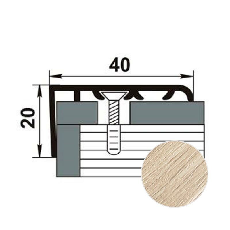 Порожек для напольных покрытий 40х20 мм, длина 1,8 м, профиль-уголок алюминиевый Лука ПУ 06, декор дуб арктик 105