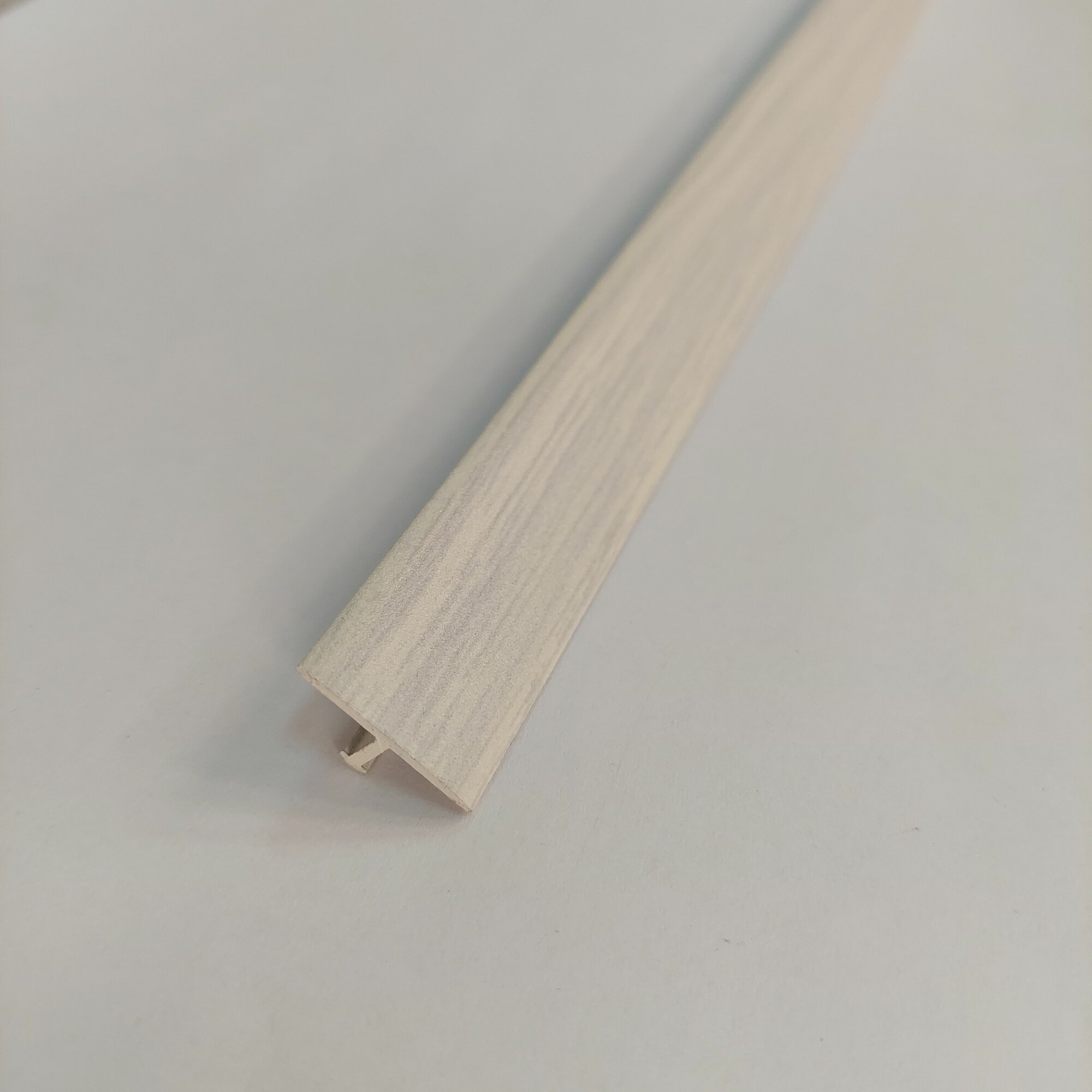 Порог алюминиевый Т образный стыкоперекрывающий одноуровневый стык (ПД 09) 18x9 900 мм ясень белый 284 ₽