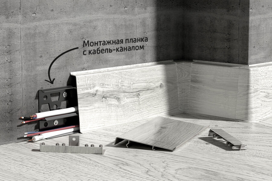 Монтажная планка только для плинтуса Cosca 20x8х2400 мм. Набор 4 штуки