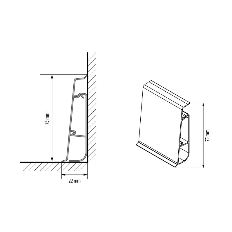 Плинтус напольный пластиковый ПВХ Cezar Hi-Line Prestige 2500x22x75 мм серый матовый М 088 790 ₽