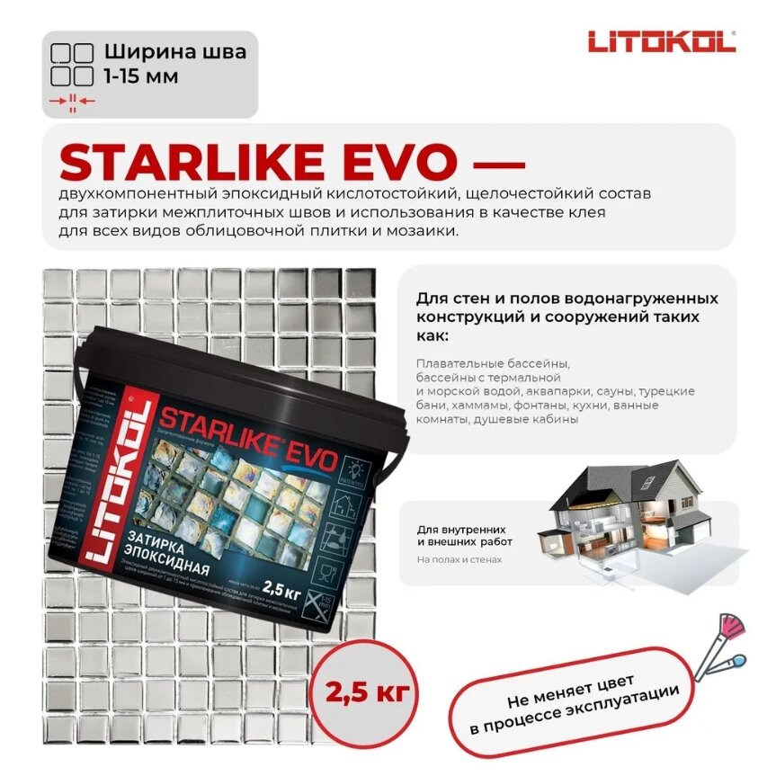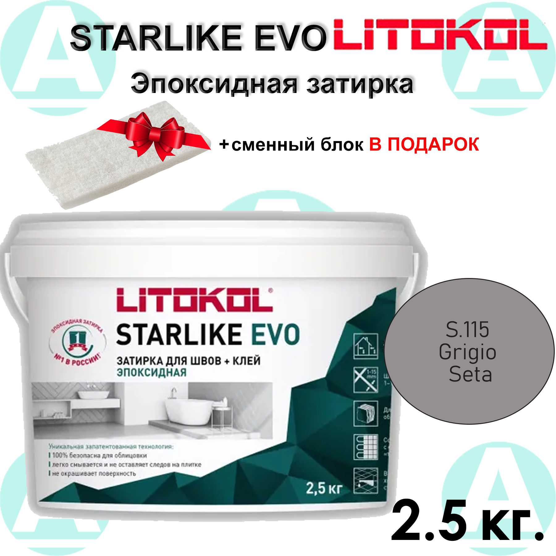 10 цен на Эпоксидная затирка Starlike EVO S.115 Grigio Seta 2.5 кг+ губка в подарок!