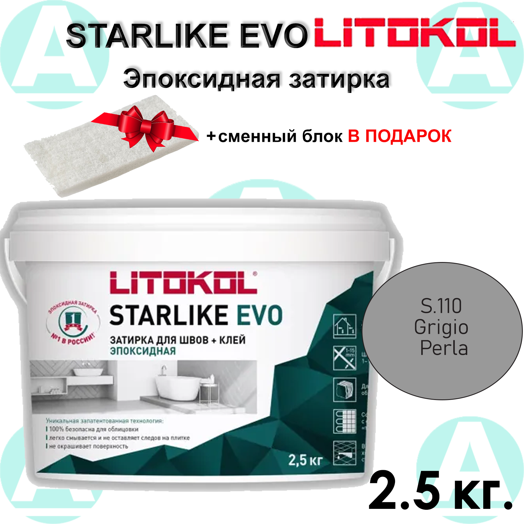 10 цен на Эпоксидная затирка Starlike EVO S.110 Grigio Perla 2.5 кг+ губка в подарок!