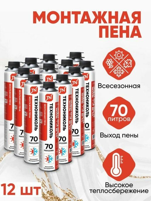Технониколь 70 Professional всесезонная профессиональная монтажная пена, 1000 мл, 12 шт