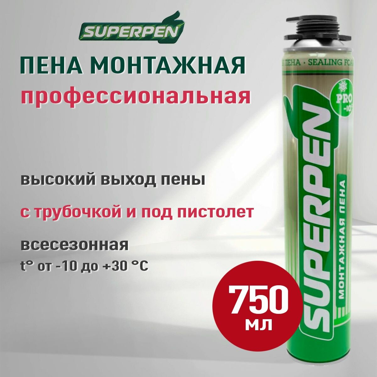 Монтажная пена полиуретановая профессиональная всесезонная SUPERPEN PRO 750 мл информация: