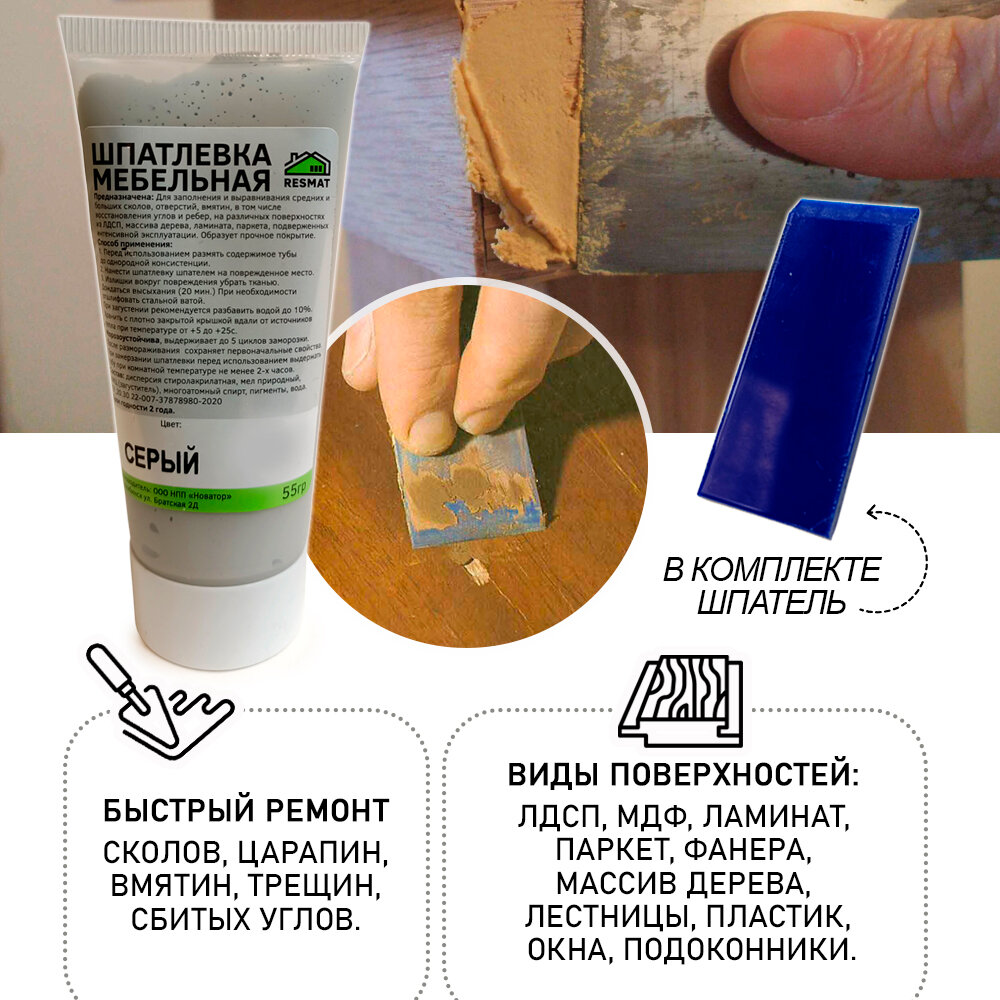 Отзывы на Шпатлевка мебельная без блистера, ремонт мебели ламината - цвет Серый