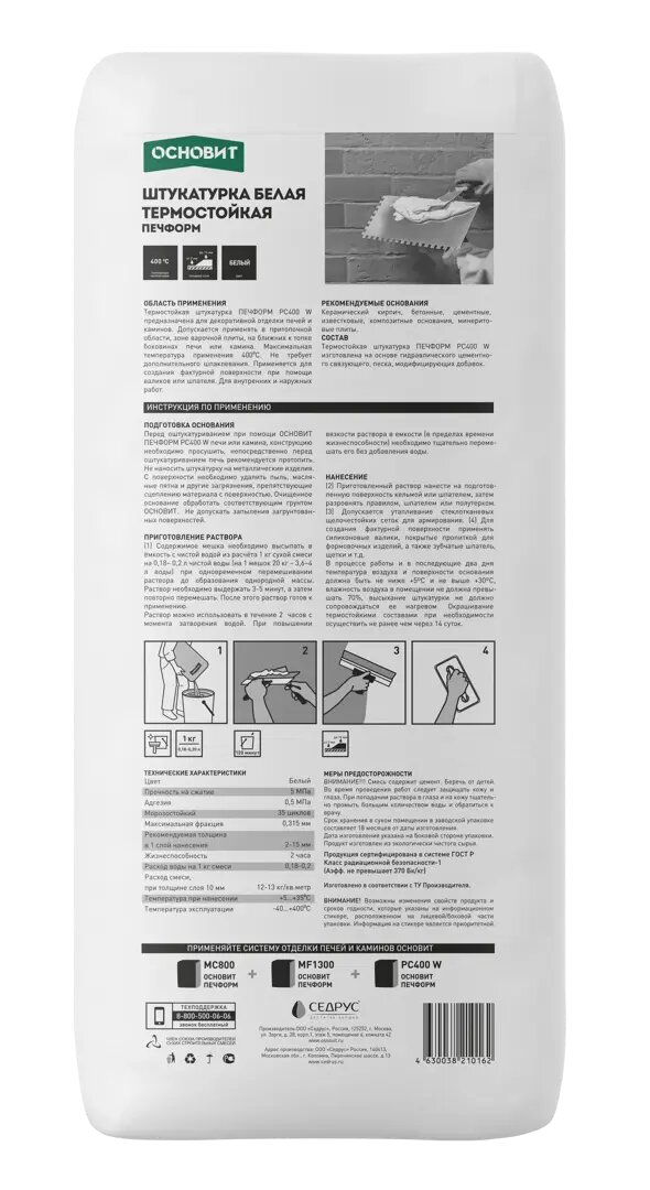 Штукатурка цементная основит PC400 W печформ белая 20 кг информация: