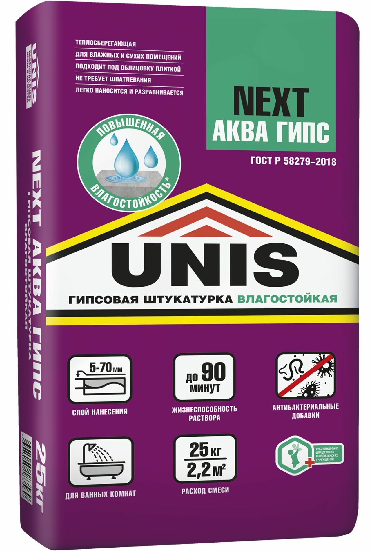 Юнис Next Аква Гипс штукатурка гипсовая (25кг) / UNIS Next Аква Гипс штукатурка гипсовая влагостойкая (25кг) информация: