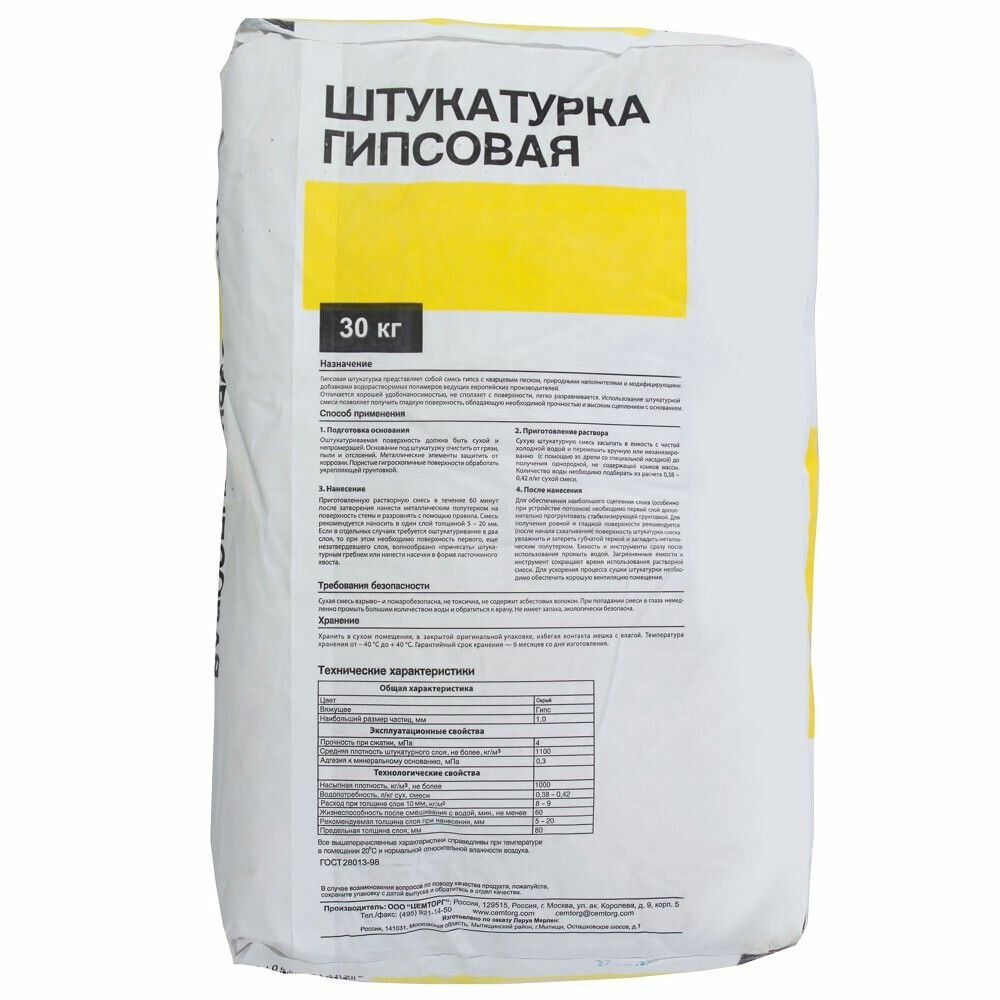 Лучшая цена штукатурка гипсовая (30кг) / лучшая цена штукатурка гипсовая для внутренних работ (30кг) информация:
