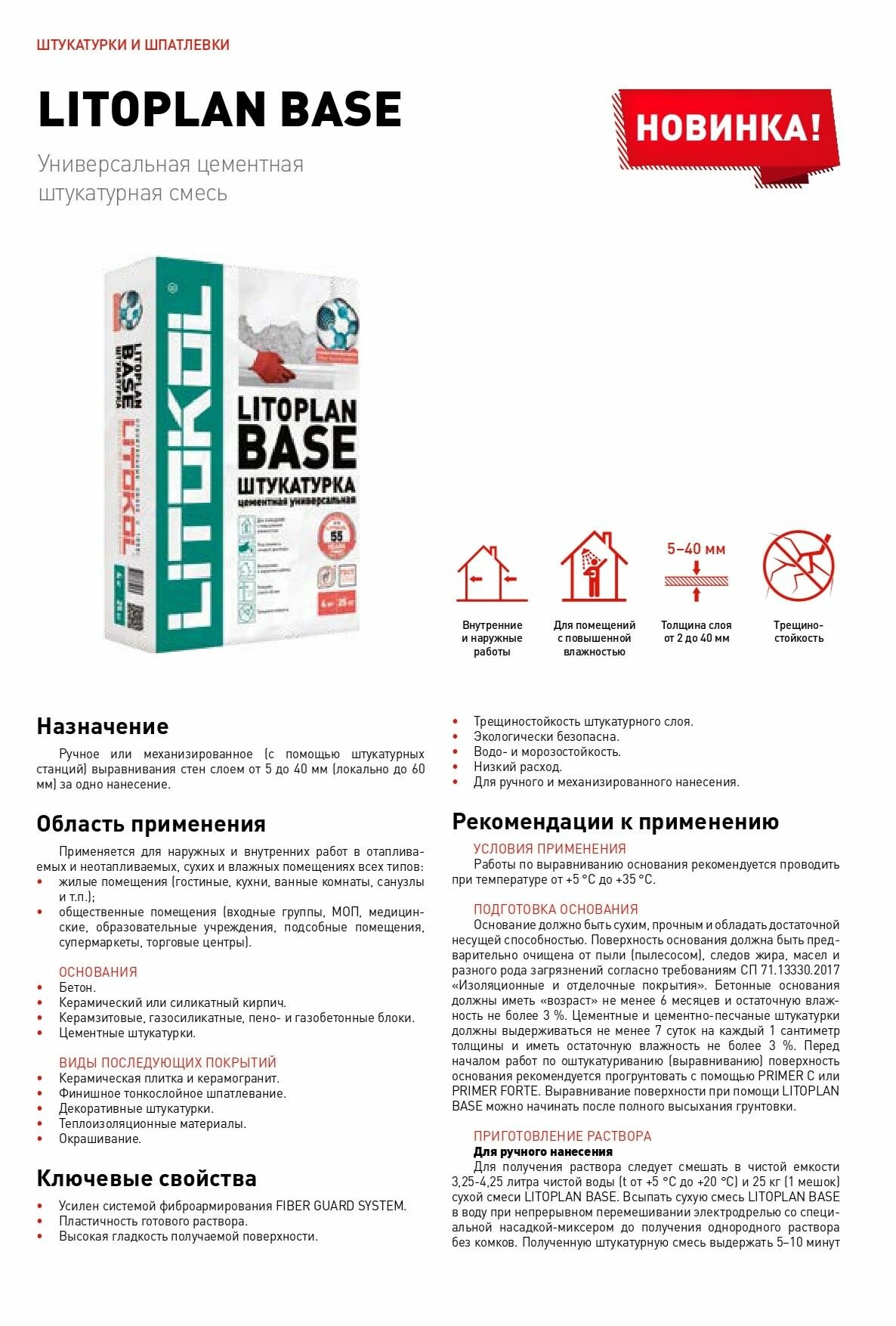 Штукатурка цементная Litokol Litoplan Base, 25 кг информация: