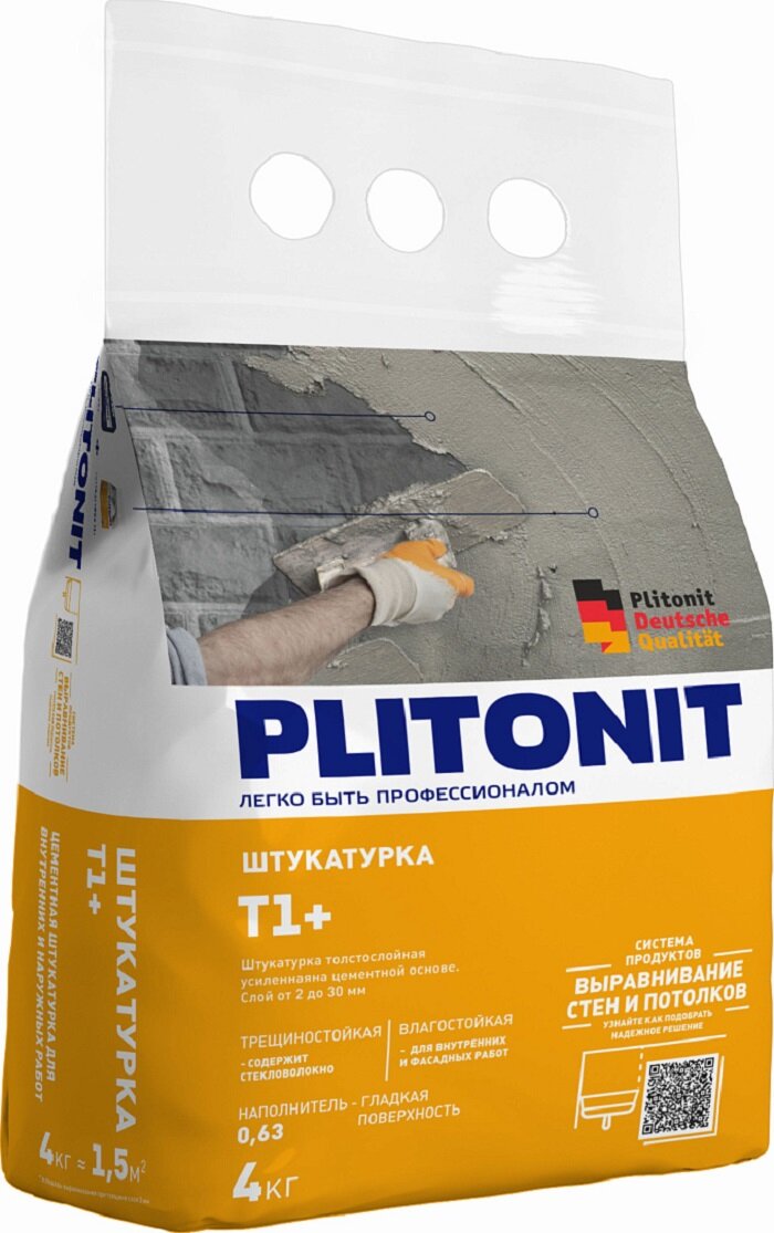 Штукатурка цементная Plitonit Т1+ с армирующими волокнами 4 кг информация: