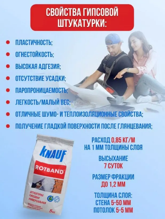Штукатурка гипсовая Ротбнд 5 кг информация: