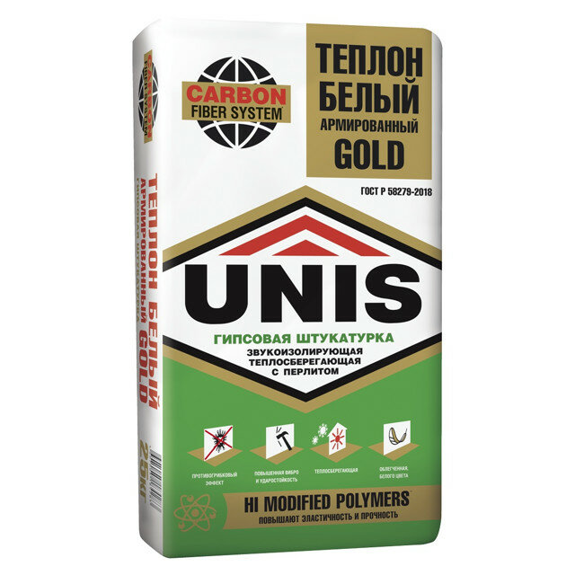 штукатурка гипсовая UNIS Gold Теплон белая 25кг, арт.GOLDTEPL-25 информация: