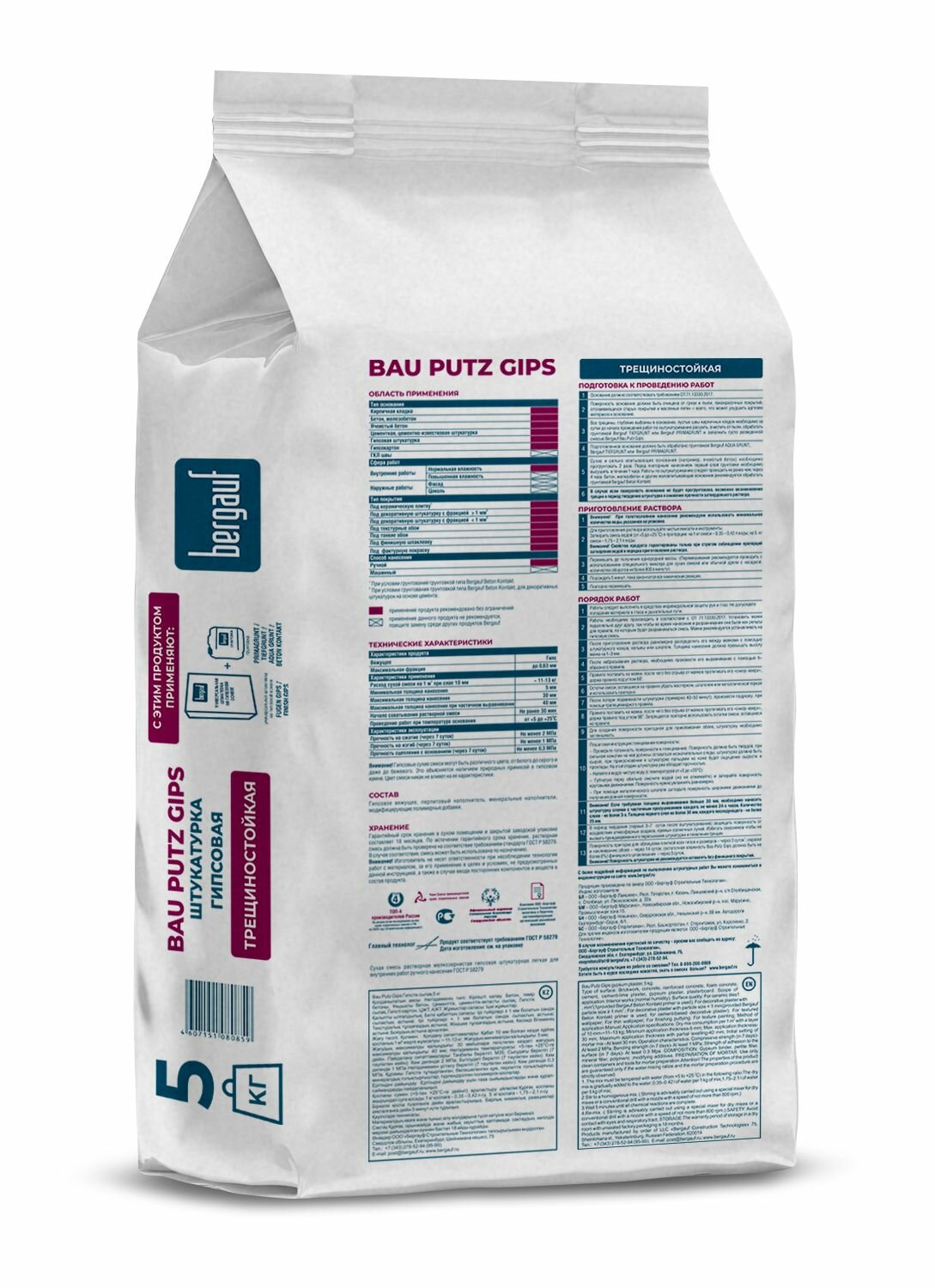 Штукатурка гипсовая Bergauf Bau Putz Gips 5 кг (10 шт.) информация: