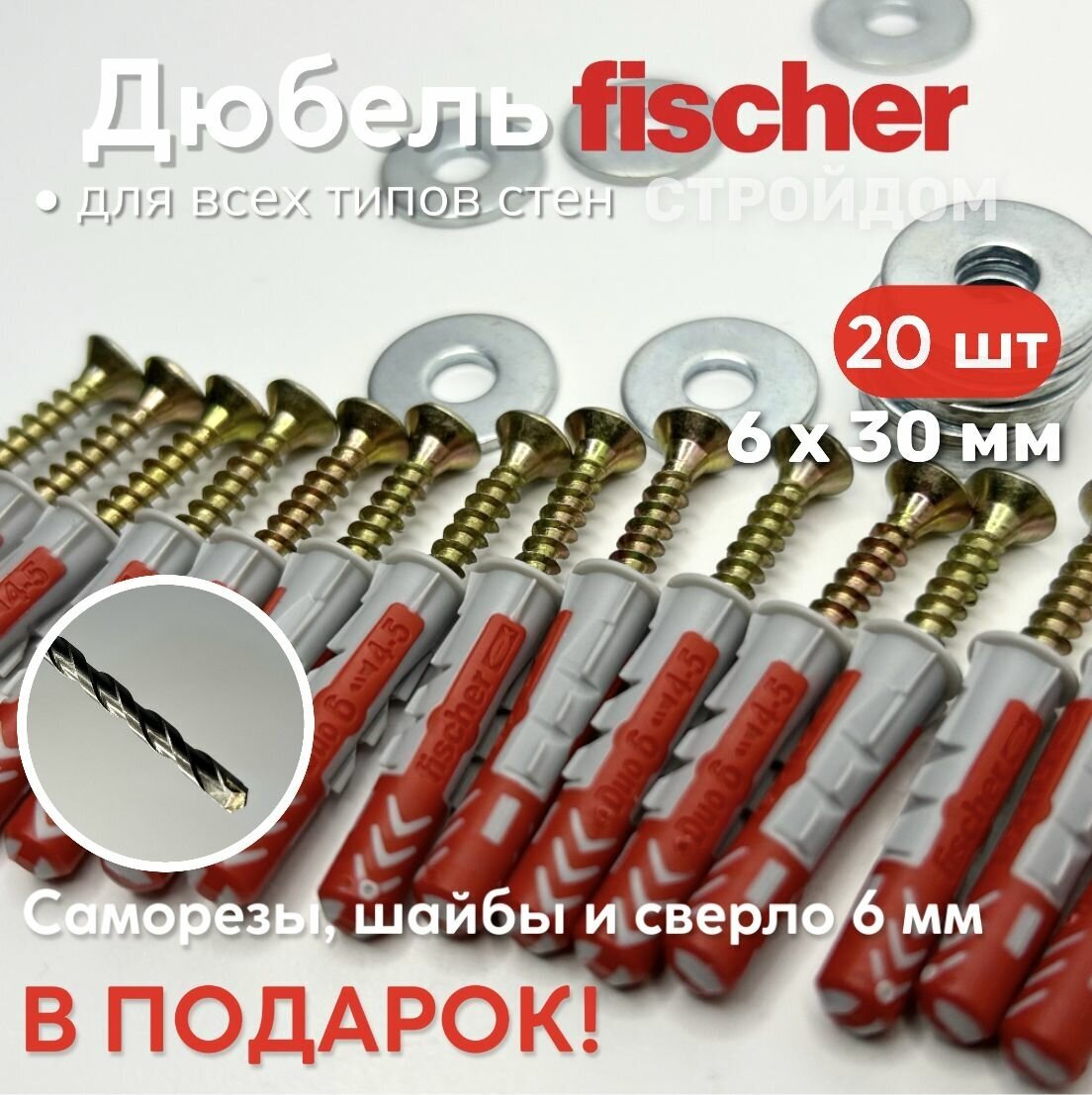 10 цен на Дюбель FISCHER 6х30мм (20шт) универсальный DuoPower высокотехнологичный