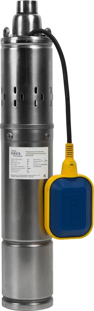 | Подробная комплектация | Насос погружной колодезный Oasis 25/50, высота подъема 50 м, 1500 л/час |