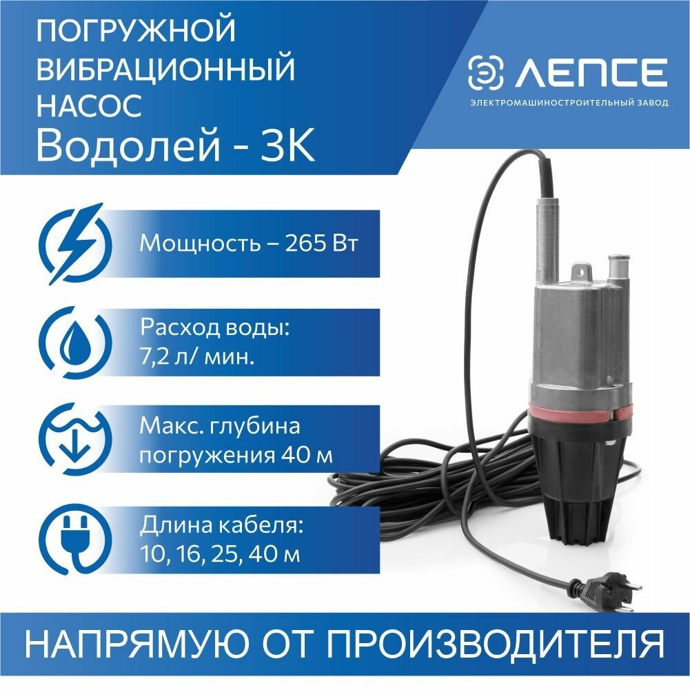 ЛЕПСЕ Лепсе Погружной насос лепсе Водолей-3К кабель 6 м