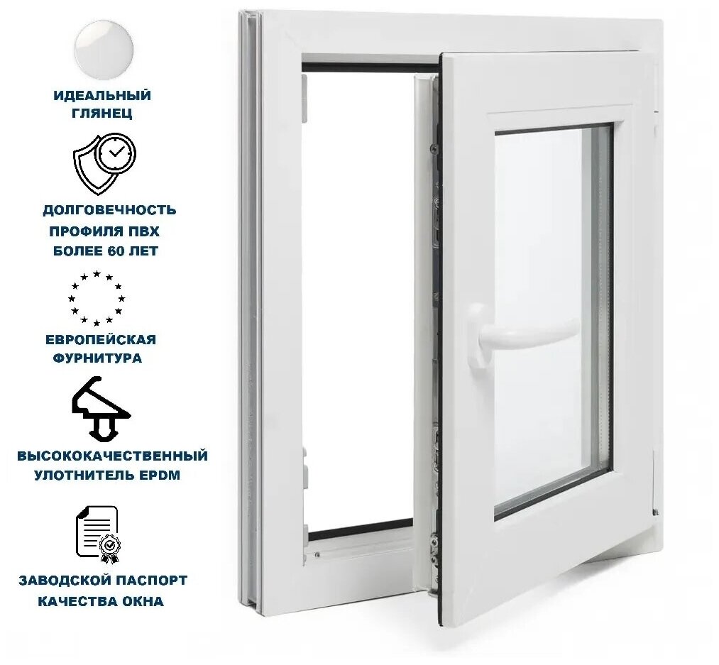 Отзывы на Окно ПВХ поворотное, профиль REHAU, высота 500 х ширина 500 мм, одностворчатое, правое, энергосберегающий стеклопакет, белое