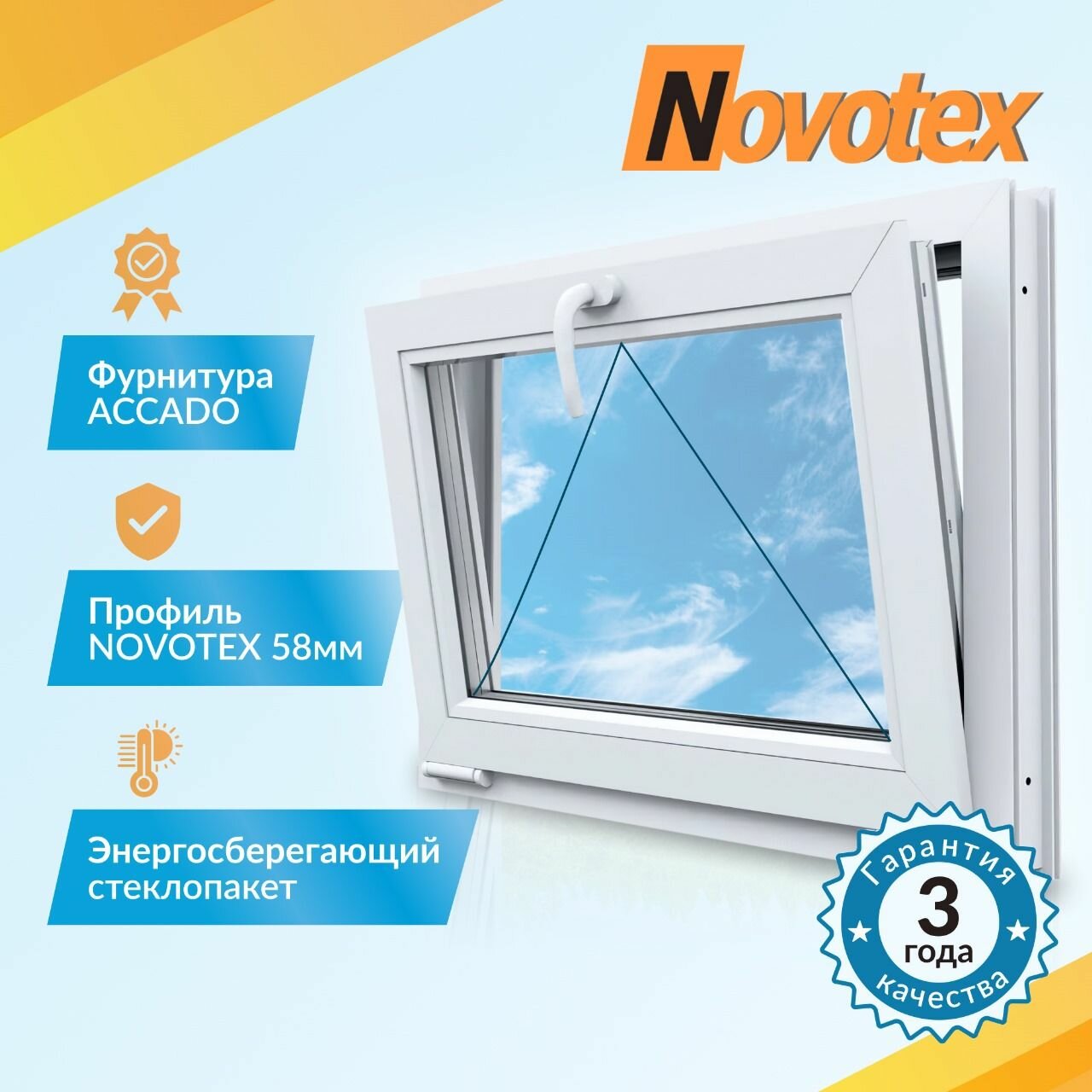 Окно 1350х600 мм Двухстворчатое тип1 (одна створка поворотно откидная правая) Novotex Techno 58 1 камера