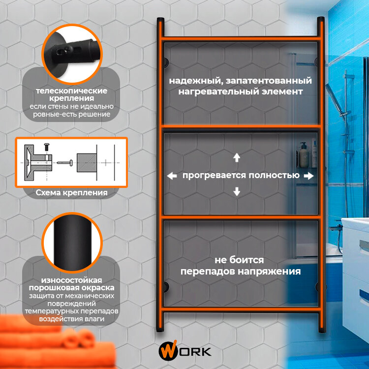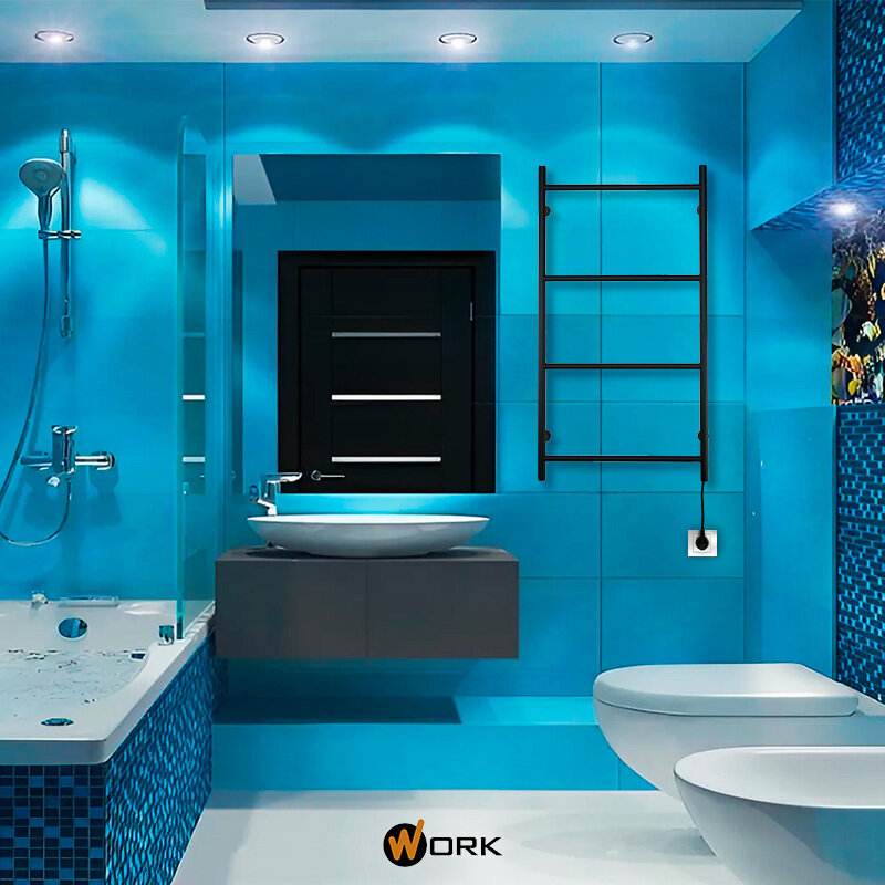 Отзывы на Полотенцесушитель Электрический WORK-Бомонд 80x40 черный 4 перекладины, 20мм, подключение справа