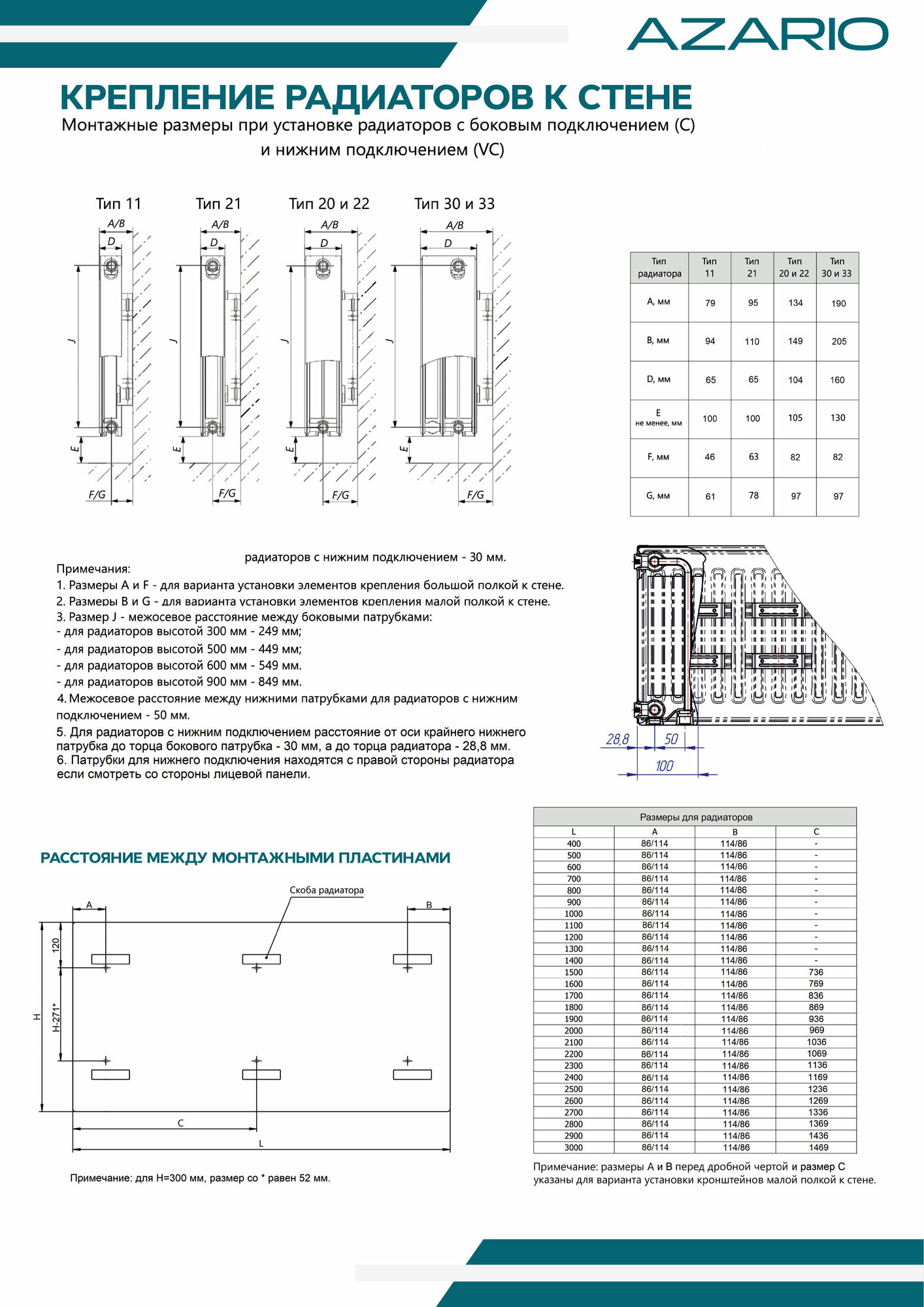 Радиатор стальной панельный AZARIO 22 300х800 боковое подключение, белый (AZ-C22-300-800) информация: