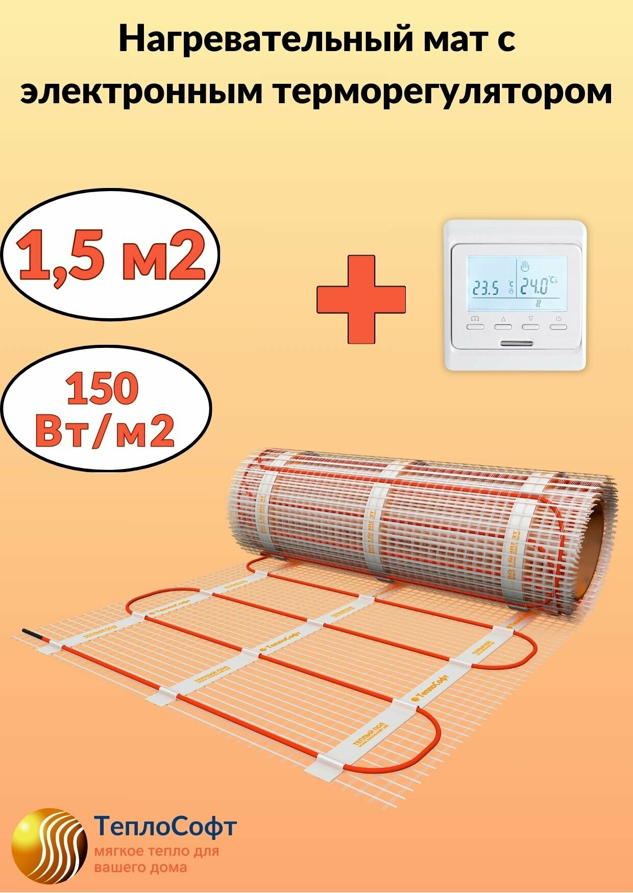 10 цен на Теплый пол электрический Теплософт под плитку 1,5 м2 с электронным терморегулятором. Нагревательный мат 1,5м.кв