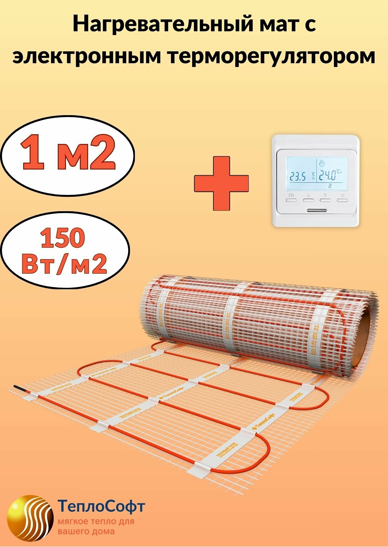 10 цен на Теплый пол электрический Теплософт под плитку 1 м2 с электронным терморегулятором. Нагревательный мат 1м.кв
