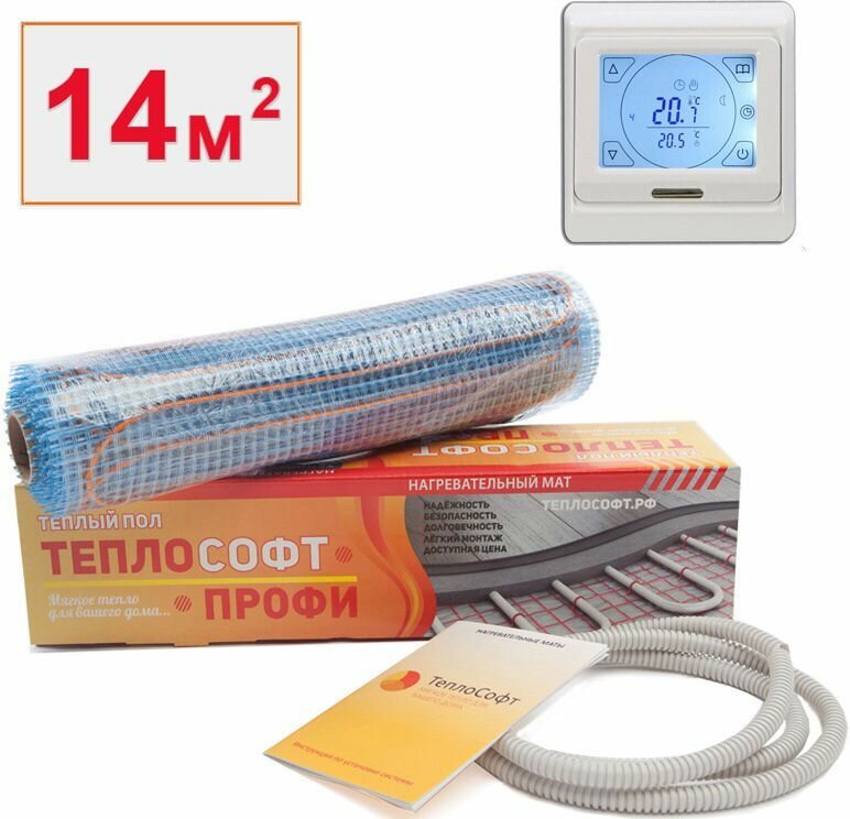 10 цен на Теплый пол Теплософт Профи. Нагревательный мат 14 м.кв. с сенсорным терморегулятором