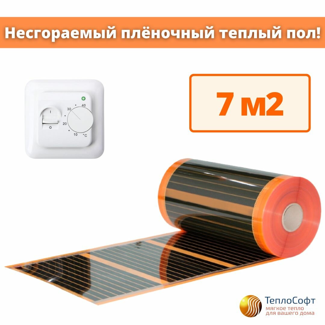Саморегулирующийся пленочный теплый пол электрический Теплософт 7м.кв. с терморегулятором информация:
