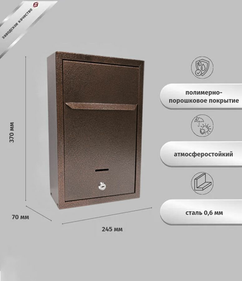 Почтовый ящик FerrumFormat альфа люкс антик медь с замком информация: