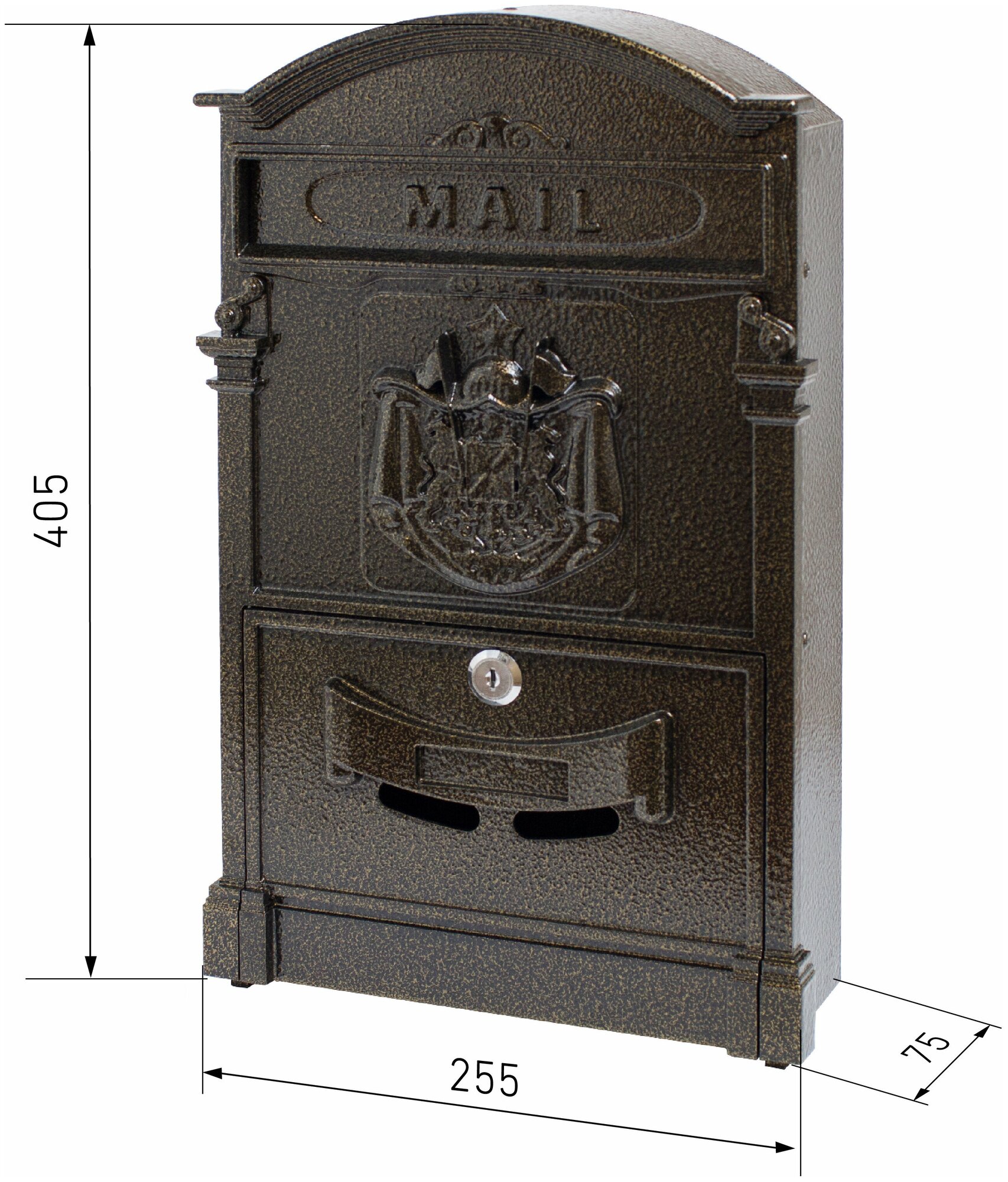 Ящик почтовый уличный для частного дома аллюр №4011В "Герб" старая медь