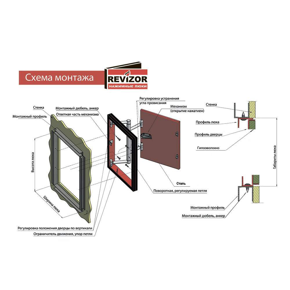 Люк ревизионный распашной REVIZOR К3 30х30 см под плитку информация: