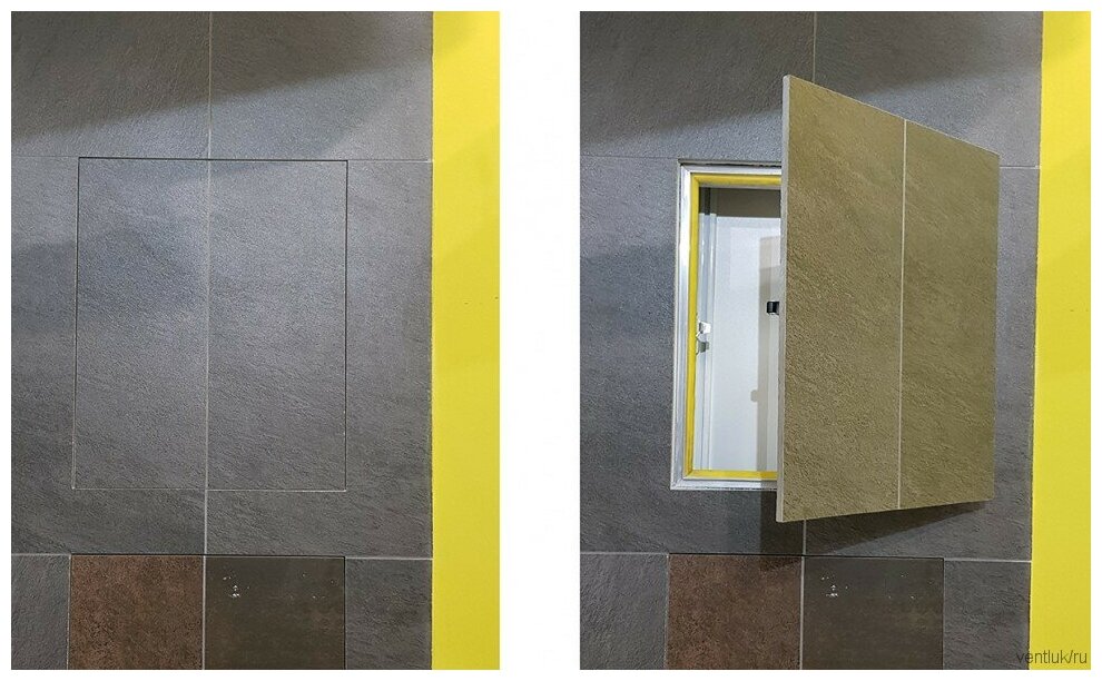Скрытый ревизионный люк 50х100 (ШхВ) под плитку «Евроформат» Практика, нажимной, распашной