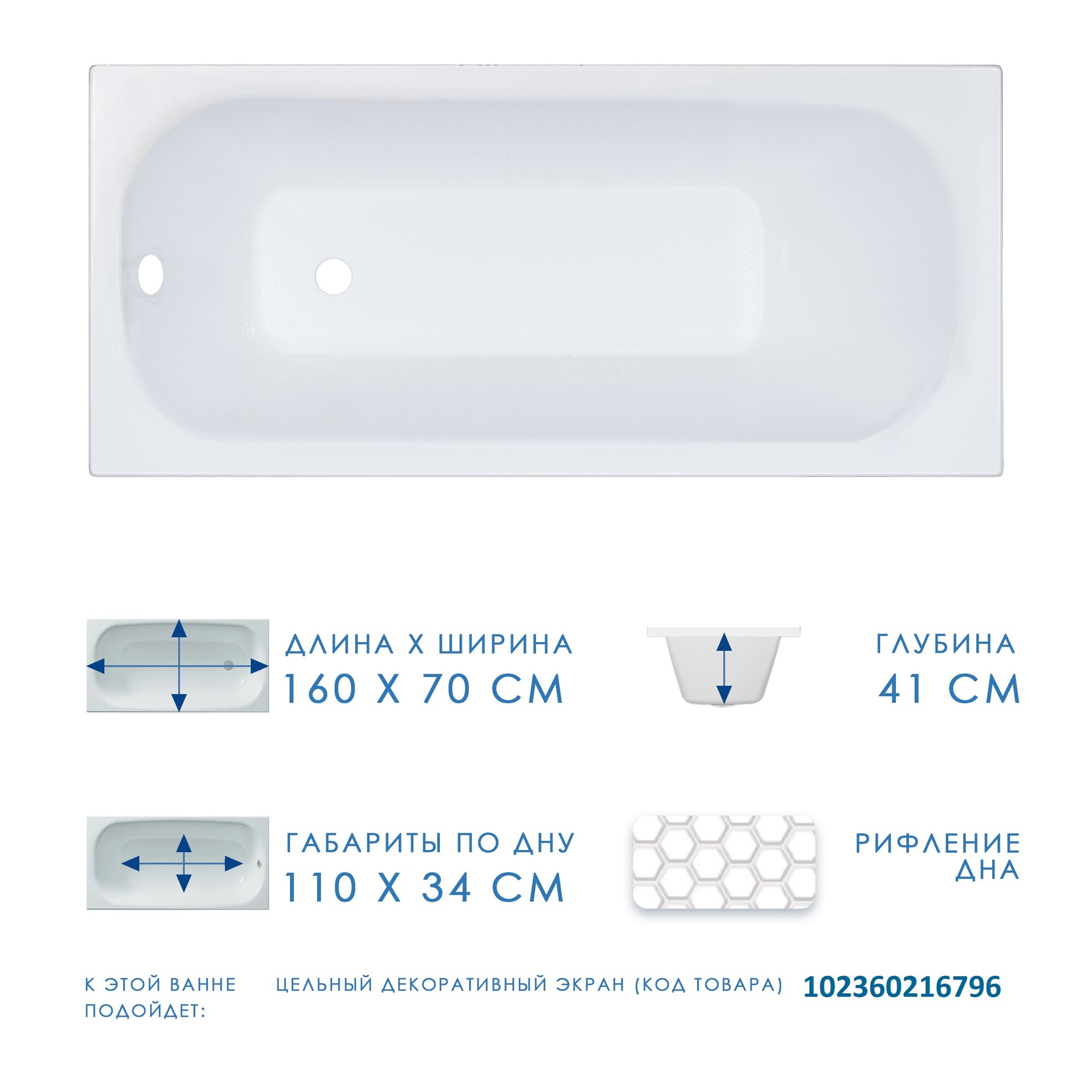 | Подробная комплектация | Стандартная комплектация: - Ванна. Дополнительная комплектация (приобретается отдельно): - Установочный комплект (ножки) - (код товара 101510576232). - Каркас - (код товара: 102365077692); - Декоративная фронтальная панель - (код товара 102360216796). |