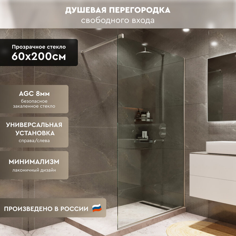 Душевая перегородка Walk In MEBELVANN 600x2000 профиль хром прозрачное стекло 8 мм информация: