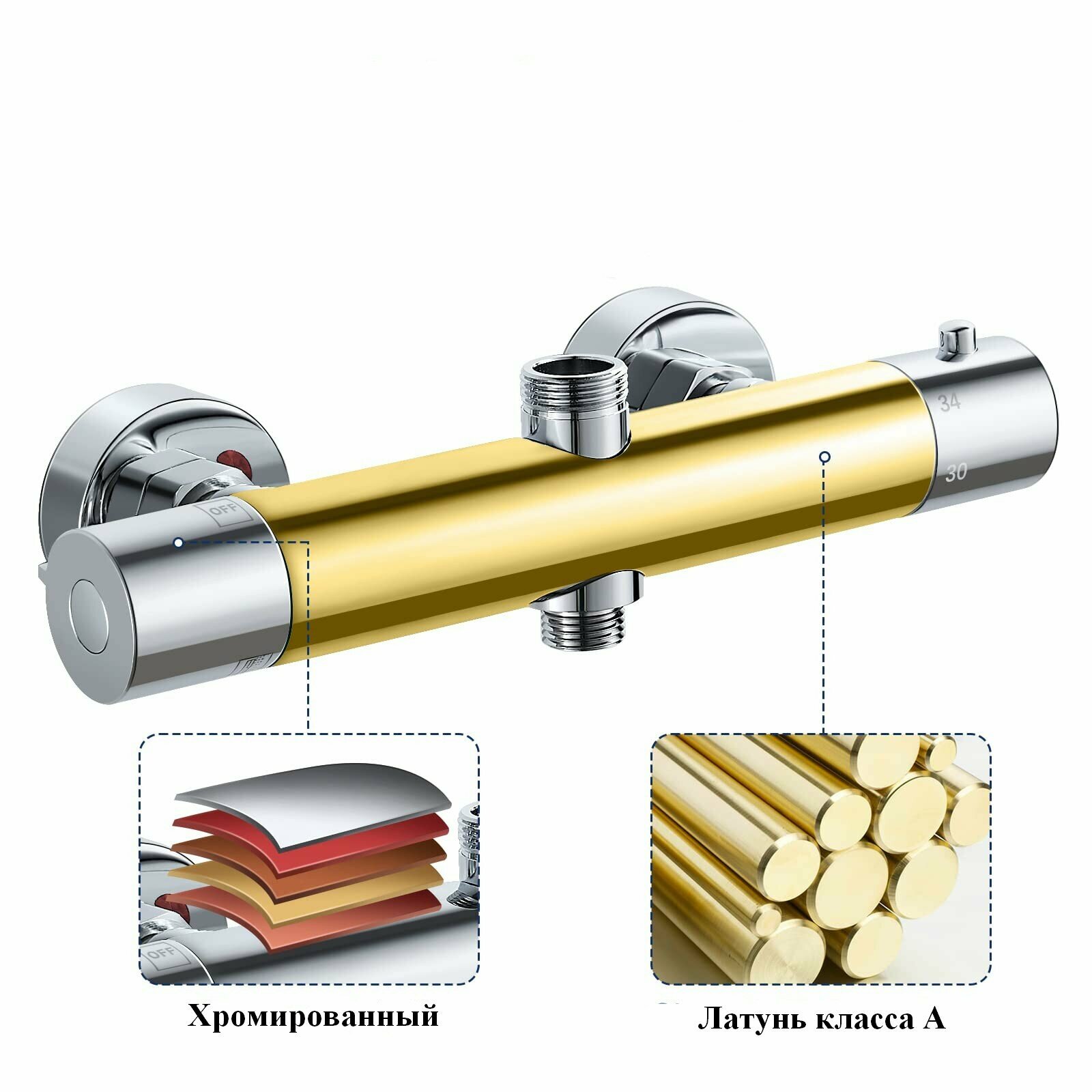 10 цен на Смеситель термостатический для ванны и душа с длинным изливом и лейкой