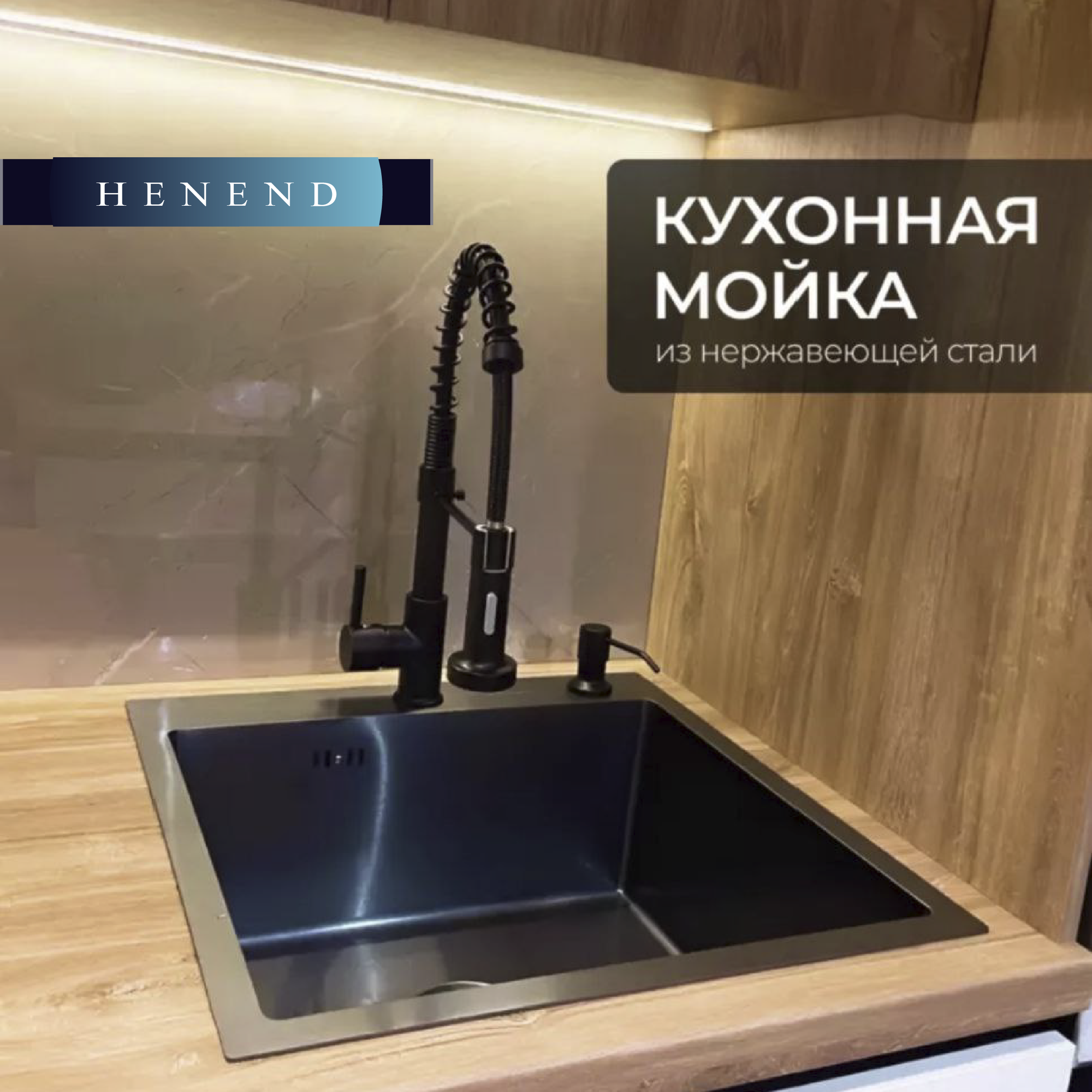 Мойка для кухни Henend 50x45 с дозатором и сушилкой 10 200 ₽