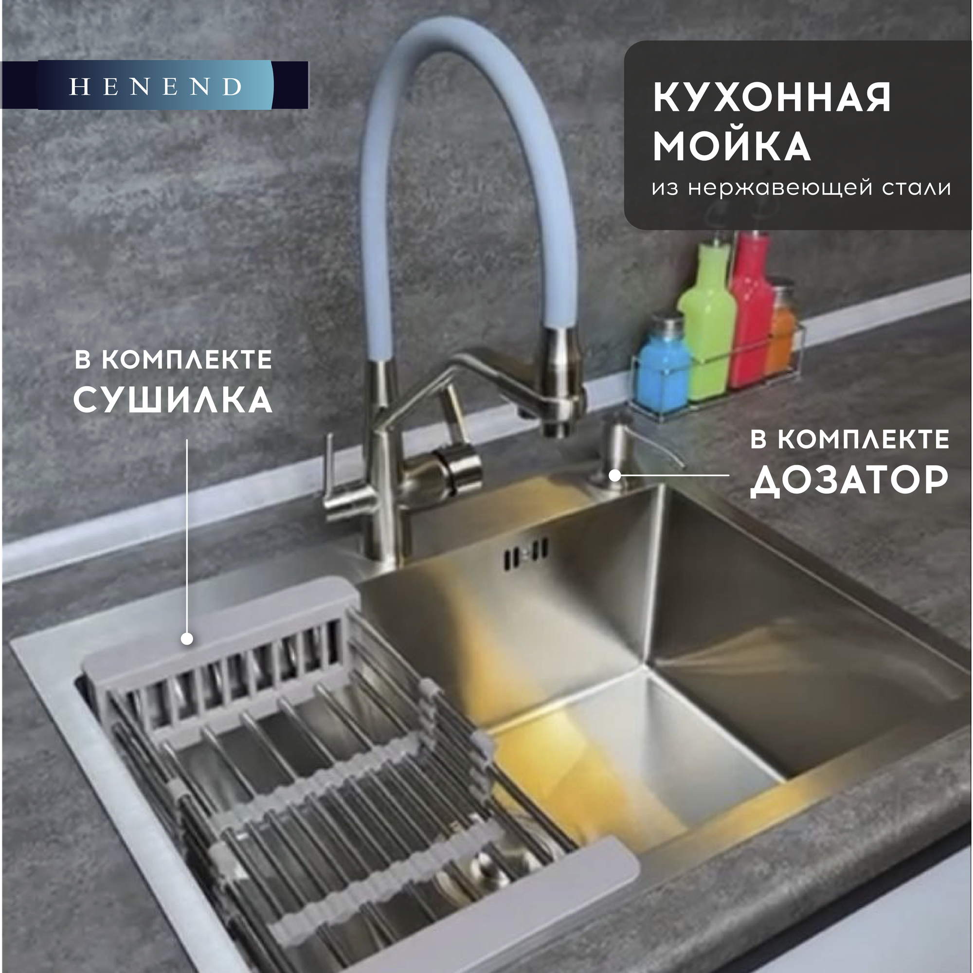 10 цен на Мойка для кухни Henend 60*45 с дозатором и сушилкой